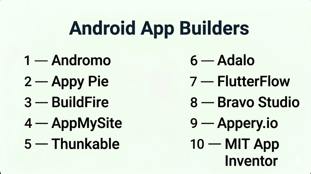 Android app builders are platforms that allow users to create, customize, and publish Android applications—often without deep coding knowledge. These tools range from no-code builders for beginners to low-code and developer-friendly platforms for more advanced use cases.