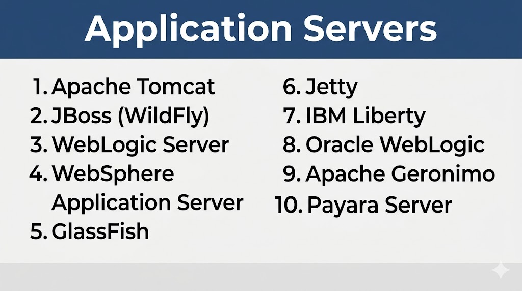 Application Servers are essential for running modern enterprise and web applications, providing the backend logic, scalability, and reliability required for business systems. Apache Tomcat remains a popular lightweight choice for developers, while JBoss and Payara offer strong enterprise capabilities. WebLogic and WebSphere dominate large-scale enterprise deployments with advanced features and support. Lightweight options like Jetty are ideal for performance-focused use cases. The right choice depends on your application requirements, technical expertise, and budget. Start with a lightweight server for development and scale up to enterprise platforms as your application grows.