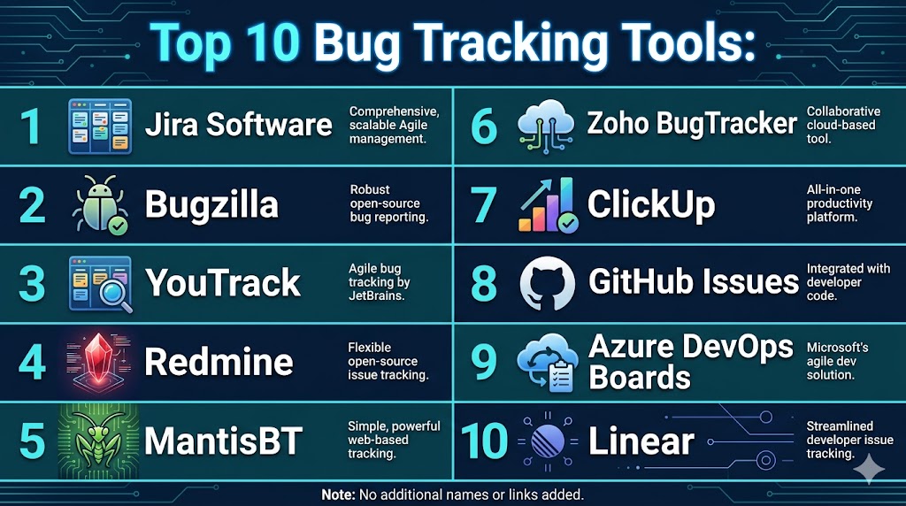 Bug Tracking Tools are software platforms used to identify, log, track, prioritize, and resolve software defects throughout the development lifecycle. These tools act as a centralized system where developers, testers, and product teams collaborate to ensure issues are documented and fixed efficiently.