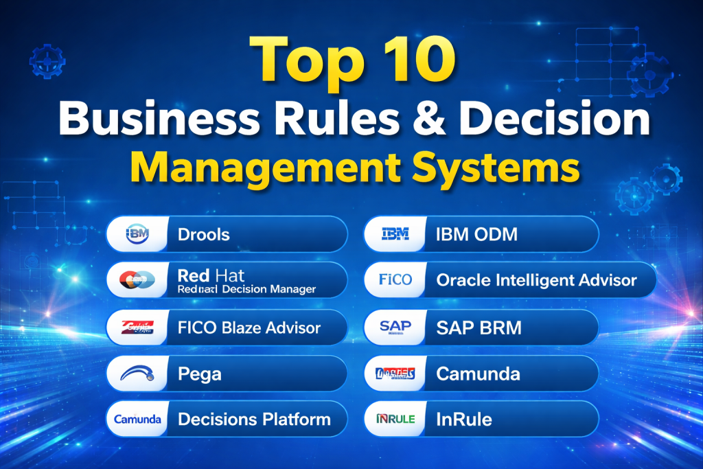 Business Rules & Decision Management Systems are essential for organizations that rely on complex, high-volume decision-making processes. They provide flexibility, scalability, and governance by separating business logic from application code. Whether you need a developer-focused rule engine or a no-code decision platform, the right choice depends on your technical expertise, integration needs, and business complexity. Start by identifying your decision workflows, shortlist a few tools, and run pilot implementations to validate performance, usability, and scalability before making a final decision.
