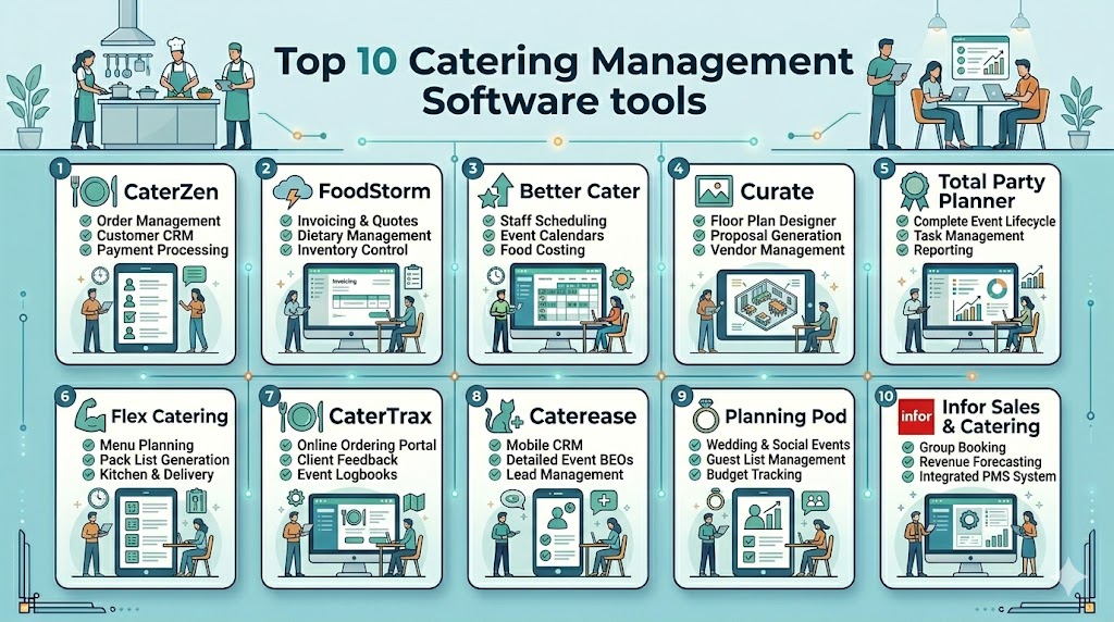 These scores are comparative and based on general capabilities. The best tool depends on your catering scale, workflow complexity, and integration needs.