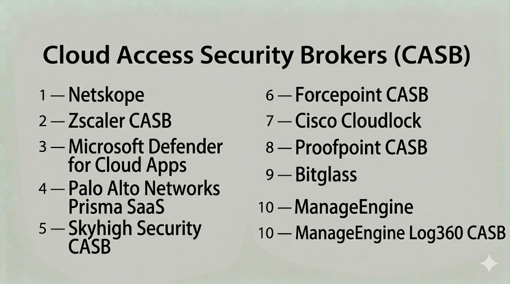Choosing the right CASB depends on your cloud ecosystem, integration needs, and organizational scale. Enterprise platforms offer deep analytics and automation, while simpler tools provide ease of deployment.