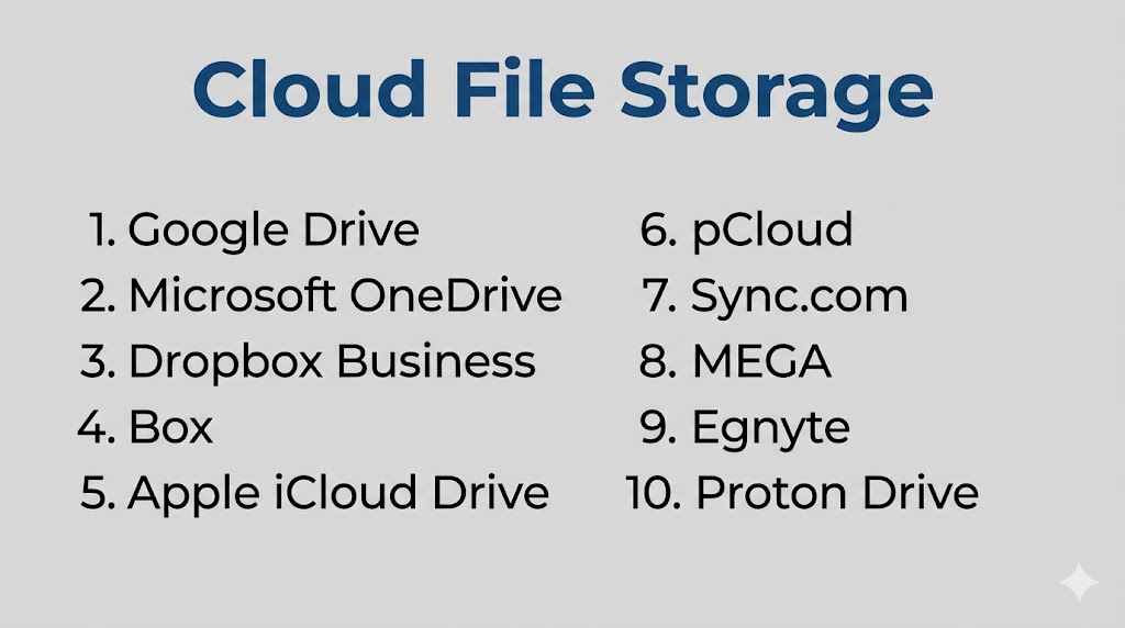 Cloud File Storage Tools are now essential productivity infrastructure for modern businesses and distributed teams. The best platform depends on your ecosystem, collaboration style, security requirements, and budget. Google Drive and OneDrive lead for productivity suites, Dropbox remains excellent for sync and sharing, Box stands out for enterprise governance, while privacy-focused users may prefer Sync.com or Proton Drive. Businesses needing hybrid control should evaluate Egnyte. Shortlist two or three options, run a pilot, and validate sync speed, permissions, integrations, and total cost before making a final decision.
