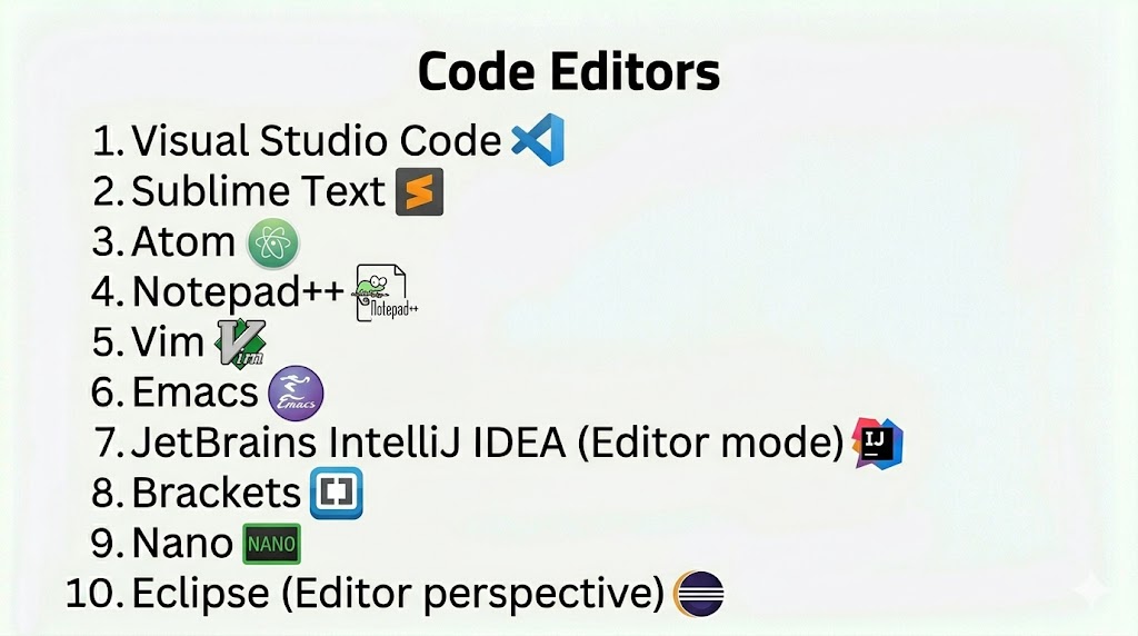 Top 10 Code Editors: Features, Pros, Cons & Comparison