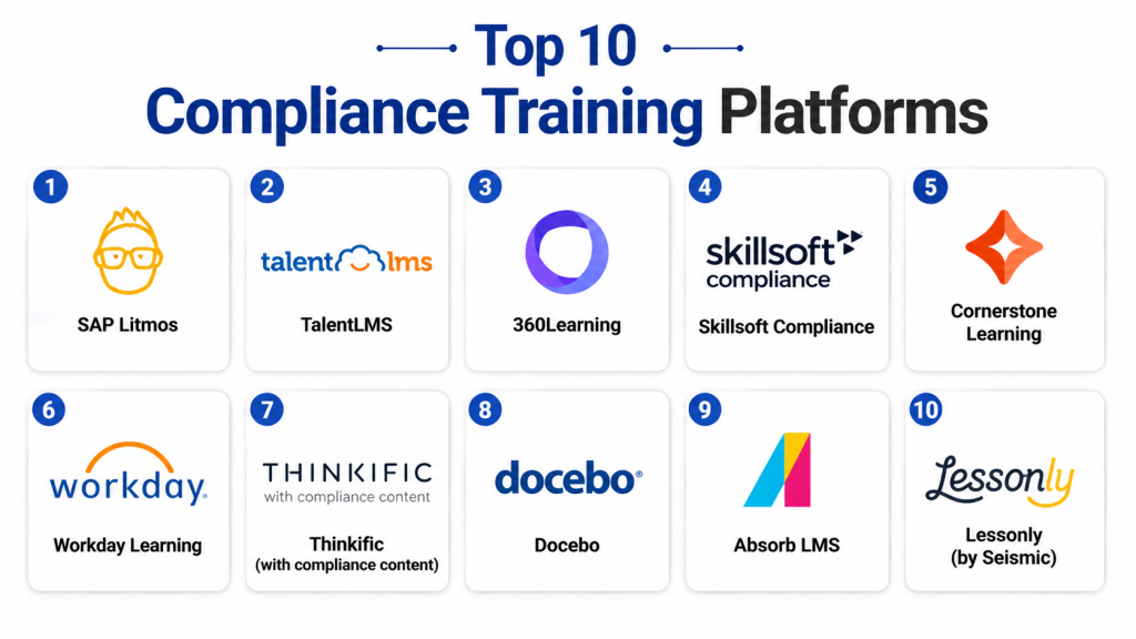 Compliance training platforms are essential for organizations committed to effective risk management and regulatory adherence. With legal obligations increasing globally, the right platform can streamline training delivery, automate tracking, and provide the analytics needed to demonstrate compliance. From user‑friendly options like TalentLMS and Lessonly for smaller teams to enterprise‑grade systems like Cornerstone and SAP Litmos, there is a spectrum of solutions available. Ultimately, your choice should align with your organizational size, regulatory complexity, and integration needs. Evaluating features such as pre‑built content, reporting depth, and automation capabilities will help you select a platform that not only meets compliance requirements but also enhances learning outcomes across your workforce.