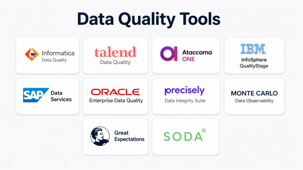 Poor data leads to incorrect insights and business risks. These tools help maintain accuracy. They improve reporting and analytics. They ensure compliance and trust.