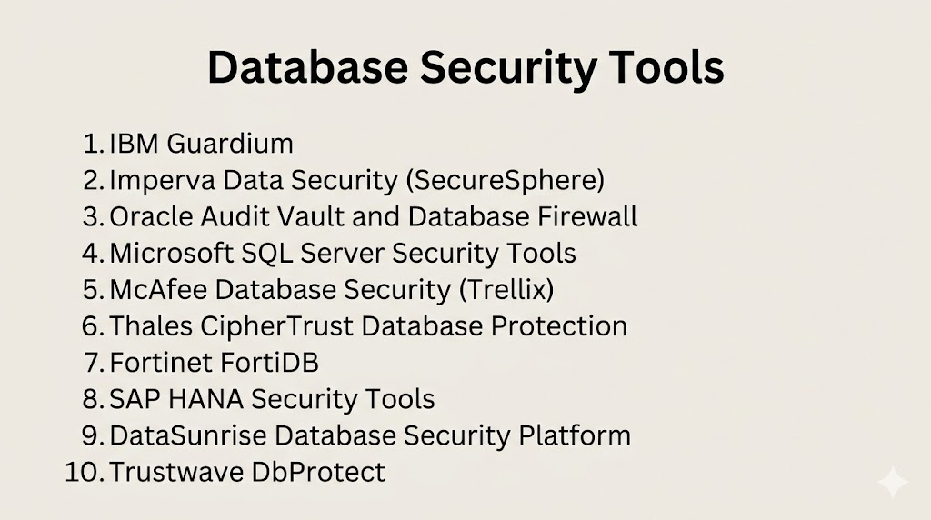 Database Security Tools are specialized platforms designed to protect databases from unauthorized access, data breaches, insider threats, and cyberattacks. Since databases store critical business data like customer records, financial information, and application data, they are one of the most targeted assets in any organization.