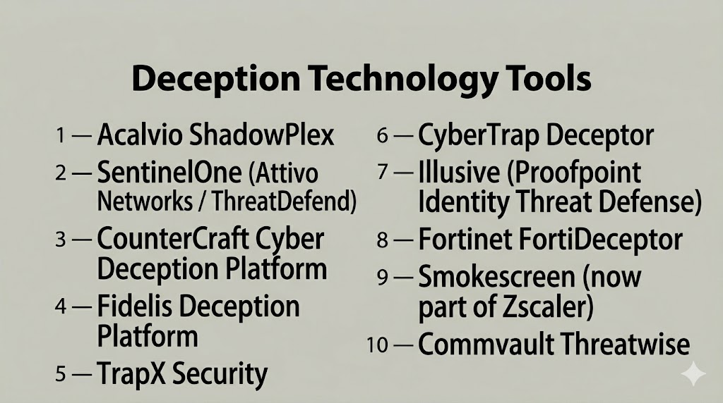 Deception Technology Tools are advanced cybersecurity solutions that use decoys, fake assets, and traps to detect and mislead attackers inside a network. Instead of only blocking threats, these tools actively lure attackers into interacting with false systems—such as fake servers, credentials, or databases—triggering high-confidence alerts when malicious activity occurs.