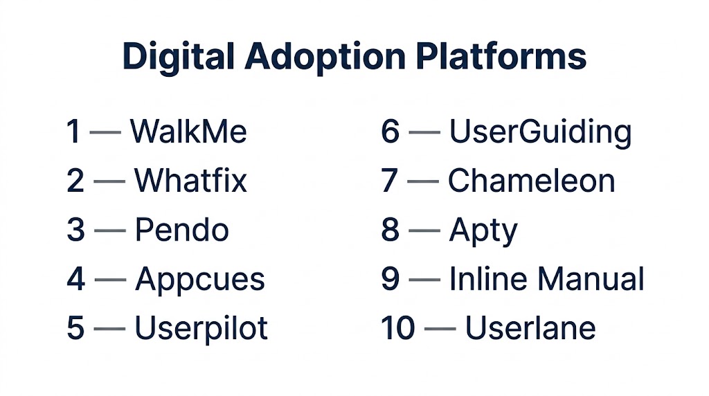 Digital Adoption Platforms have become essential for organizations navigating complex software ecosystems and digital transformation initiatives. While enterprise solutions like WalkMe, Whatfix, and Pendo offer powerful analytics and scalability, tools such as Appcues and UserGuiding provide simplicity and affordability for smaller teams. The right platform depends on your organization’s size, software complexity, and adoption goals rather than a single universal solution. It is important to evaluate tools based on usability, automation, and analytics capabilities before making a decision. Testing a few platforms in real workflows can help identify the best fit. A well-chosen digital adoption platform ultimately ensures faster onboarding, improved productivity, and better ROI on technology investments.