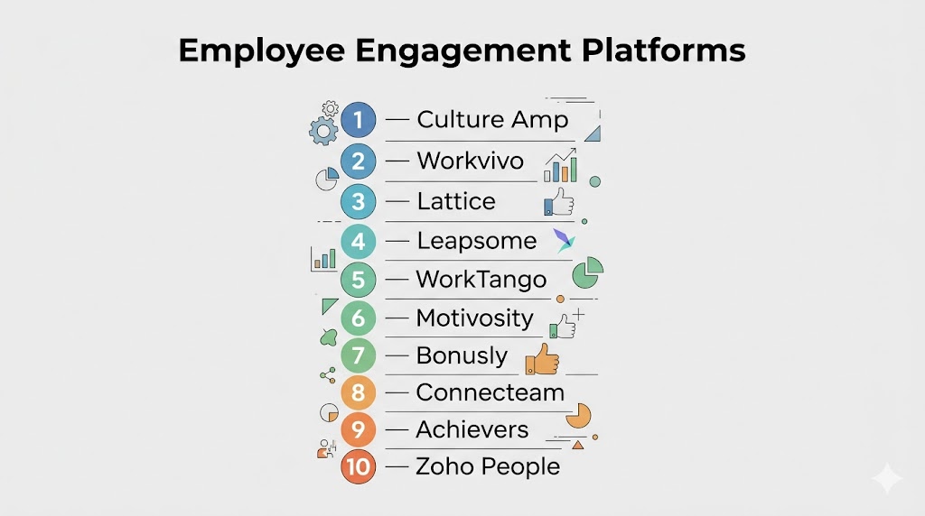 Employee engagement platforms have become essential for organizations looking to build a motivated, productive, and connected workforce in today’s competitive environment. While enterprise solutions like Culture Amp and Achievers offer deep analytics and scalability, tools such as Bonusly and Zoho People provide simplicity and affordability for smaller teams. The right platform depends on your organization’s size, engagement strategy, and integration needs rather than a single universal solution. It is important to evaluate tools based on usability, analytics capabilities, and long-term scalability before making a decision. Testing a few platforms in real scenarios can help identify the best fit. A well-chosen engagement platform ultimately leads to higher employee satisfaction, better retention, and improved business performance.
