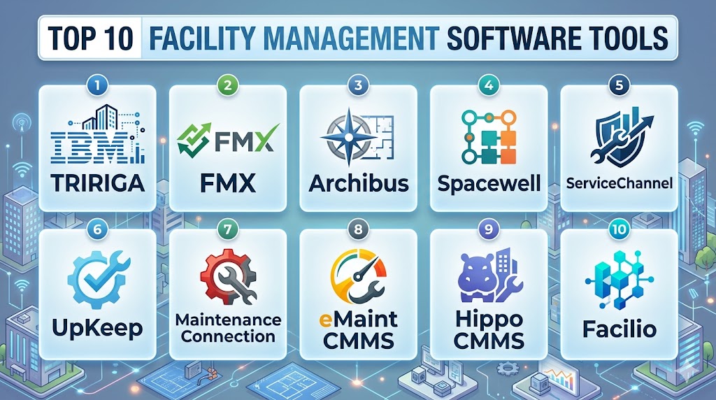 Facility Management Software is essential for modern organizations that manage multiple assets, buildings, and maintenance operations. It helps reduce downtime, improve efficiency, and optimize costs through automation and real time insights. From enterprise platforms like IBM TRIRIGA and Facilio to simple tools like FMX and Hippo CMMS, each solution serves different business needs. Choosing the right tool depends on scale, complexity, and integration requirements. A well implemented facility management system enables smarter operations, better planning, and long term asset efficiency.