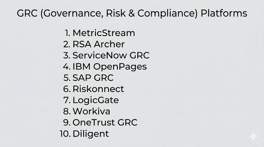 GRC (Governance, Risk & Compliance) platforms are software solutions that help organizations manage policies, assess risks, and ensure compliance with regulatory requirements in a centralized system. These tools unify governance processes, risk management, and compliance activities to improve decision-making and operational efficiency.