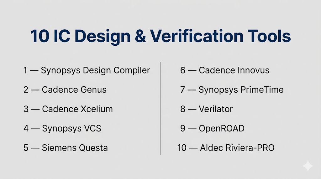 IC Design & Verification tools are critical for building modern semiconductor devices. While enterprise tools like Synopsys and Cadence dominate the industry, open-source tools provide accessible entry points.