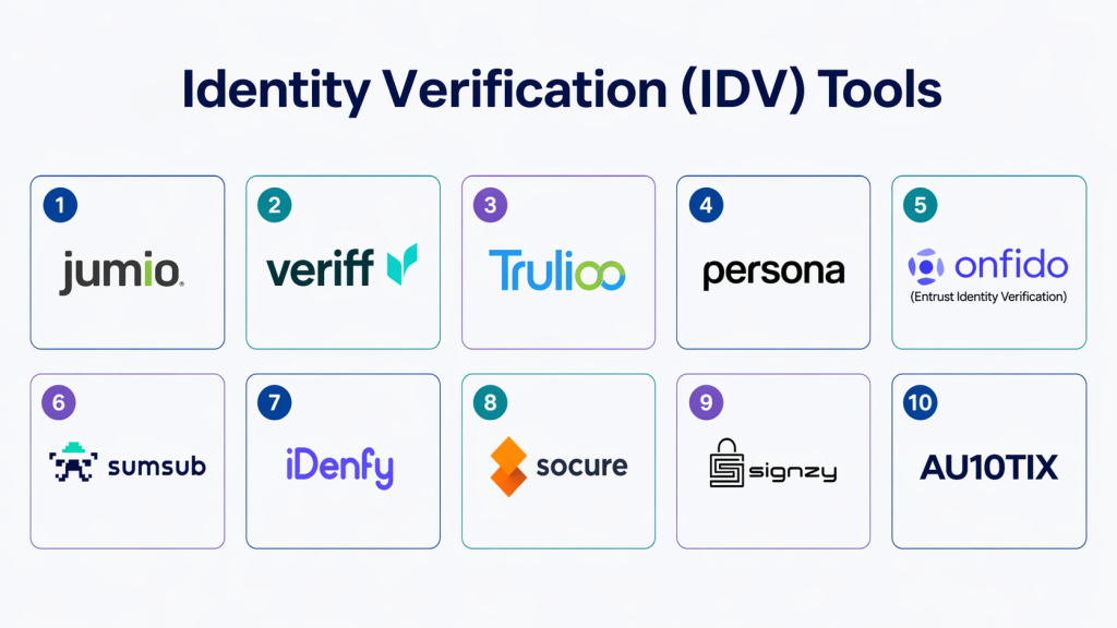 Identity Verification (IDV) Tools are platforms that help businesses verify that users are who they claim to be using technologies like document verification, facial biometrics, and database checks. These tools are critical for preventing fraud, enabling secure onboarding, and ensuring compliance in industries like fintech, banking, and eCommerce.
