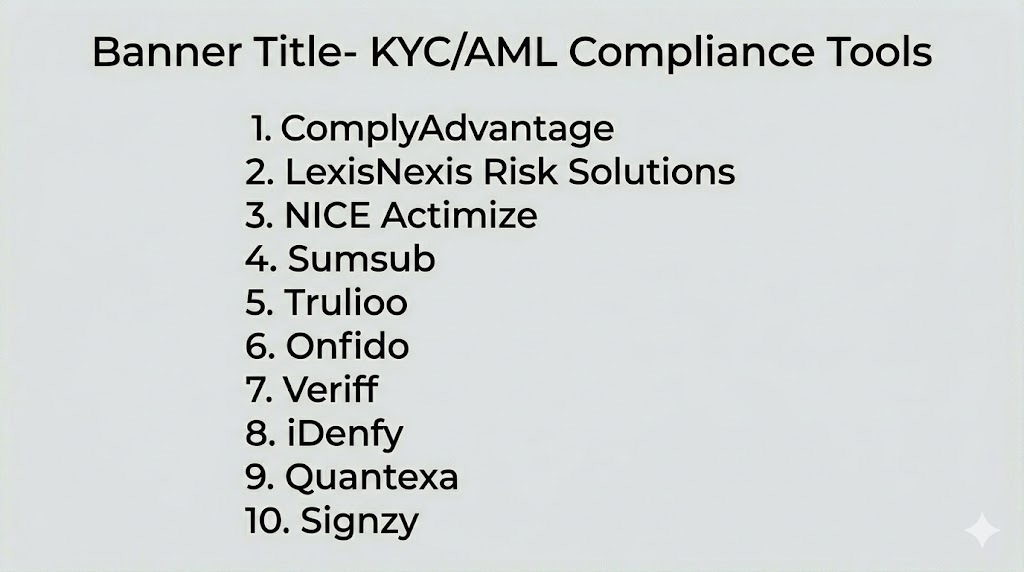 KYC (Know Your Customer) and AML (Anti-Money Laundering) compliance tools help organizations verify customer identities, monitor transactions, and detect financial crime risks. These platforms are essential for banks, fintech companies, and regulated businesses to comply with global regulations and prevent fraud.