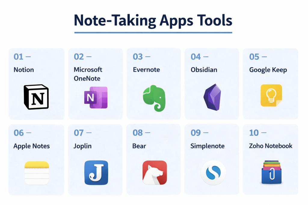 Note-taking apps are digital tools designed to capture, organize, and retrieve information efficiently across devices. Unlike traditional notebooks, these apps allow users to create structured notes, attach files, collaborate in real time, and search content instantly.
