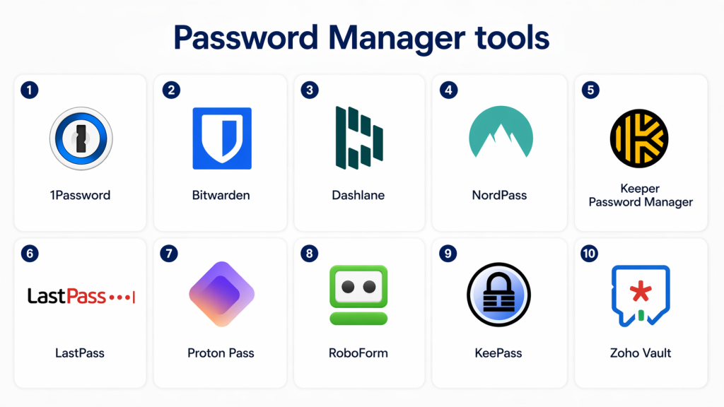 From enterprise solutions like 1Password and Keeper to open-source tools like Bitwarden and KeePass, each platform serves different user needs and security requirements.