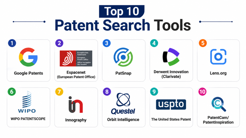 Patent Search Tools are specialized platforms that enable inventors, legal professionals, and R&D teams to find, analyze, and monitor patent information from global authorities. These tools help uncover prior art, assess freedom‑to‑operate risks, track competitors, and support strategic innovation decisions.