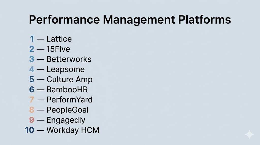 Performance management platforms have become essential for organizations aiming to improve employee productivity, align goals, and drive continuous development. While enterprise solutions like Betterworks and Workday HCM offer powerful analytics and scalability, tools such as Lattice and 15Five provide simplicity and flexibility for smaller teams. The right platform depends on your organization’s size, performance strategy, and integration needs rather than a single universal solution. It is important to evaluate tools based on usability, feedback capabilities, and scalability before making a decision. Testing a few platforms in real scenarios can help identify the best fit. A well-chosen performance management platform ultimately leads to stronger employee performance and long-term business success.