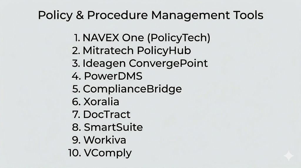 These tools help organizations create, manage, and track policies while ensuring compliance and consistency.