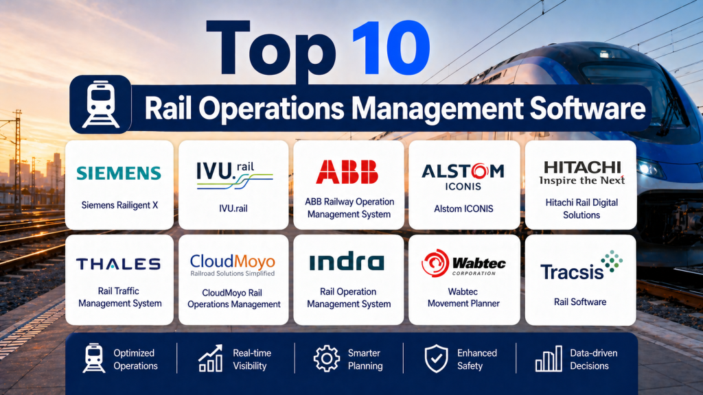 Rail Operations Management Software is a critical component of modern railway systems, enabling operators to manage complex networks with efficiency, safety, and precision. These platforms integrate scheduling, dispatching, monitoring, and analytics into a unified system, allowing rail operators to optimize performance and reduce delays. As rail networks continue to expand and digital transformation accelerates, adopting advanced software solutions becomes essential for maintaining reliability and competitiveness. Different platforms cater to different operational needs, from enterprise-grade systems like Siemens Railigent X and ABB to flexible cloud solutions like CloudMoyo. The right choice depends on factors such as network size, operational complexity, and integration requirements. There is no single best solution, and organizations must evaluate their priorities carefully.