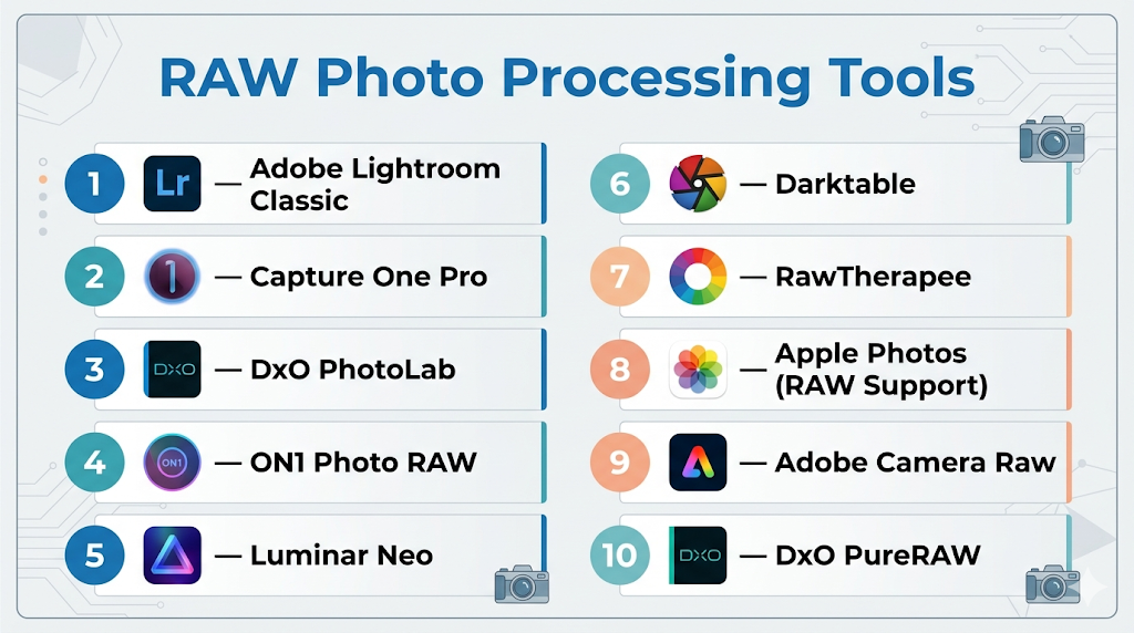 As photography workflows become more advanced, RAW processing tools have evolved into intelligent platforms powered by AI, automation, and high-performance rendering. Modern tools now offer features like noise reduction, lens correction, color grading, and non-destructive editing—making them essential for professional and serious hobbyist photographers.