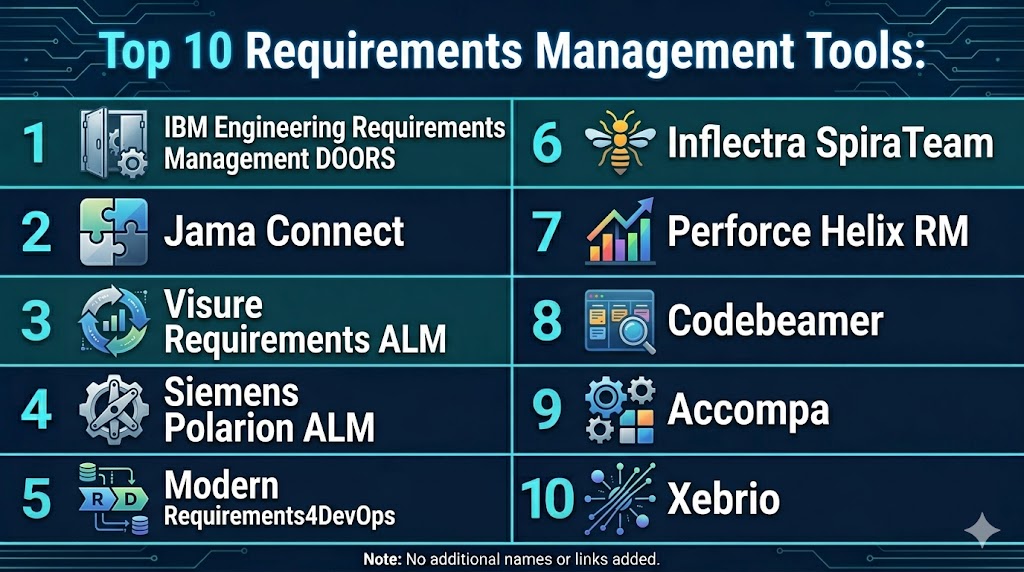Requirements Management Tools are essential for ensuring that projects remain aligned with business goals, stakeholder expectations, and technical requirements throughout the development lifecycle. They provide structured workflows, traceability, and collaboration capabilities that reduce risks, improve communication, and enhance product quality. From lightweight tools like Xebrio and Accompa to enterprise-grade platforms like IBM DOORS and Jama Connect, each solution offers unique strengths depending on organizational needs and project complexity. The right choice depends on factors such as scalability, integration needs, and compliance requirements rather than a one-size-fits-all solution. Organizations should prioritize usability, traceability, and ecosystem integration when selecting a tool. A practical next step is to shortlist a few tools, run pilot implementations, and evaluate how well they align with your workflows and long-term product development strategy.