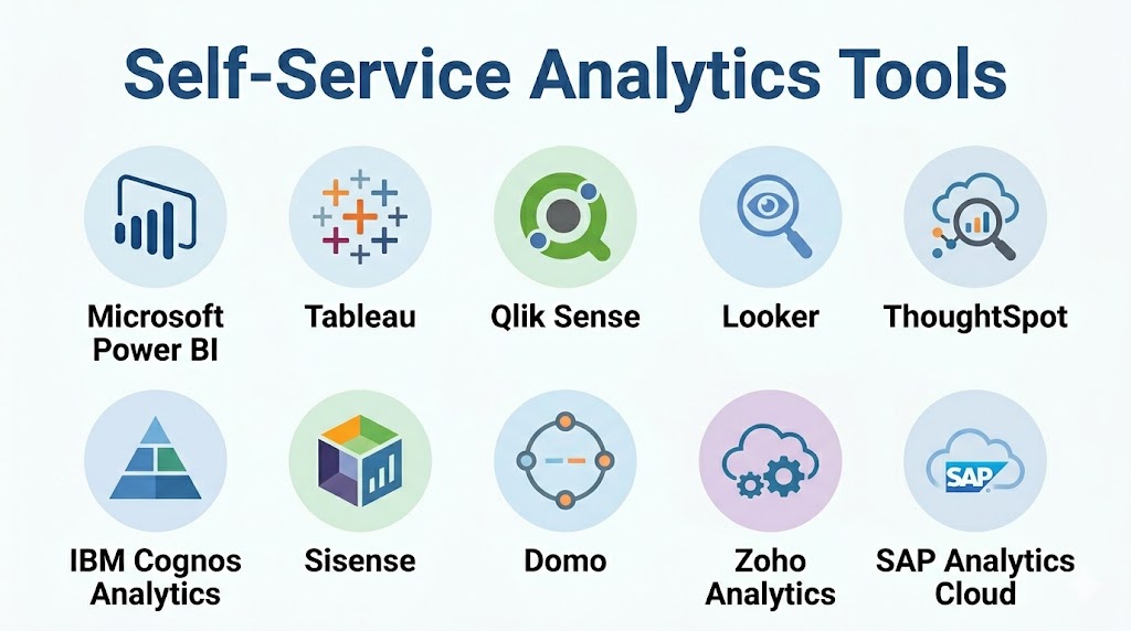 Self-service analytics tools allow users to analyze data without technical expertise. They provide dashboards and reports. They enable data exploration. They improve decision-making.