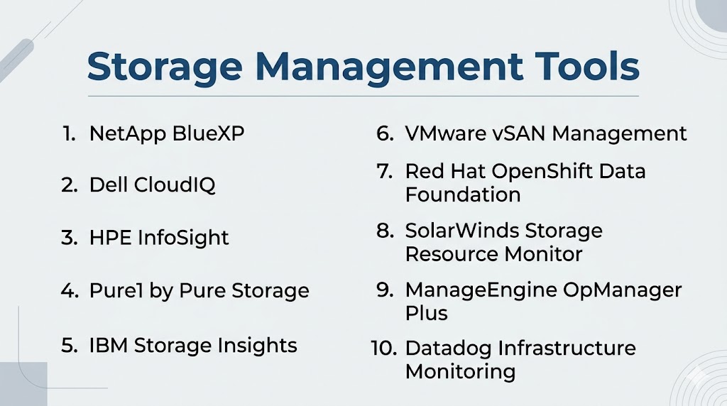 Top 10 Storage Management Tools: Features, Pros, Cons & Comparison