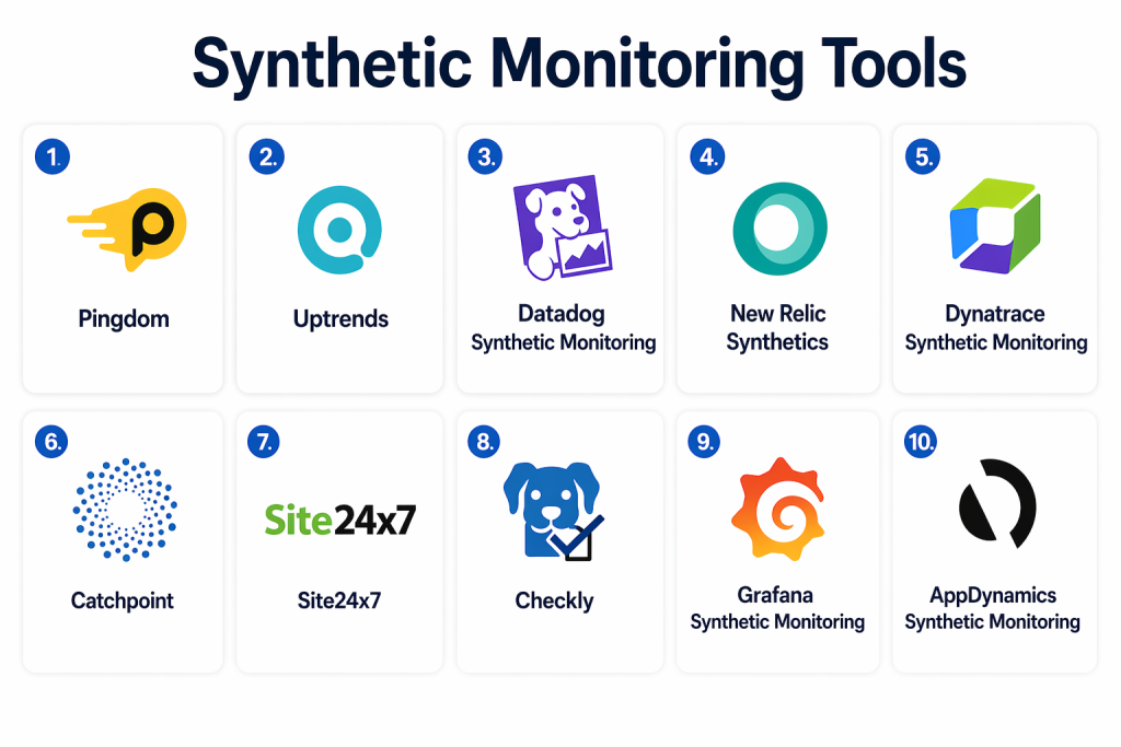 Synthetic Monitoring Tools are platforms that simulate user interactions with applications, websites, and APIs to proactively test performance, availability, and reliability. Instead of waiting for real users to encounter issues, these tools continuously run scripted tests—such as page loads, login flows, or API calls—from multiple geographic locations to detect problems early.